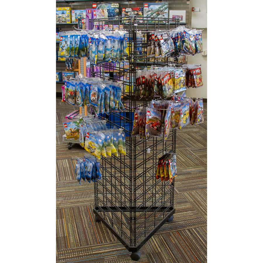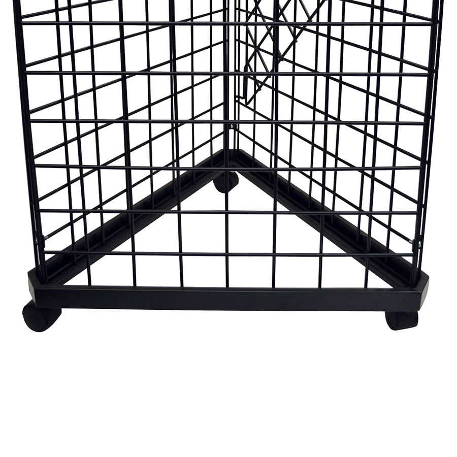 Build your own gridwall display by starting with this triangle grid dolly, then add grid or slatgrid panels, grid clips and a topper. The triangle gridwall dolly serves as a cart for your grid display and includes four 3/8'' casters for easy mobility. The triangle grid dolly can hold three 2 feet wide grid panels and is available in chrome, black, or a white finish. For improved stability, use grid joining clips to connect panels then add a topper and accessories of your choosing.